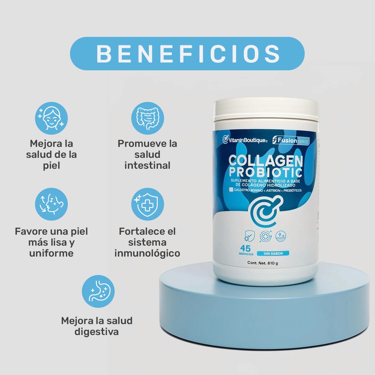 Con Collagen Probiotic, inviertes en movilidad, resistencia y equilibrio metabólico. Promueve bienestar y rendimiento físico sostenido. Es la ciencia al servicio de tu esencia, el autocuidado que te permite vivir radiante. Siente la diferencia de una fórmula experta, sin sabor, fácil de integrar a tu rutina. Enciende tu energía interior.