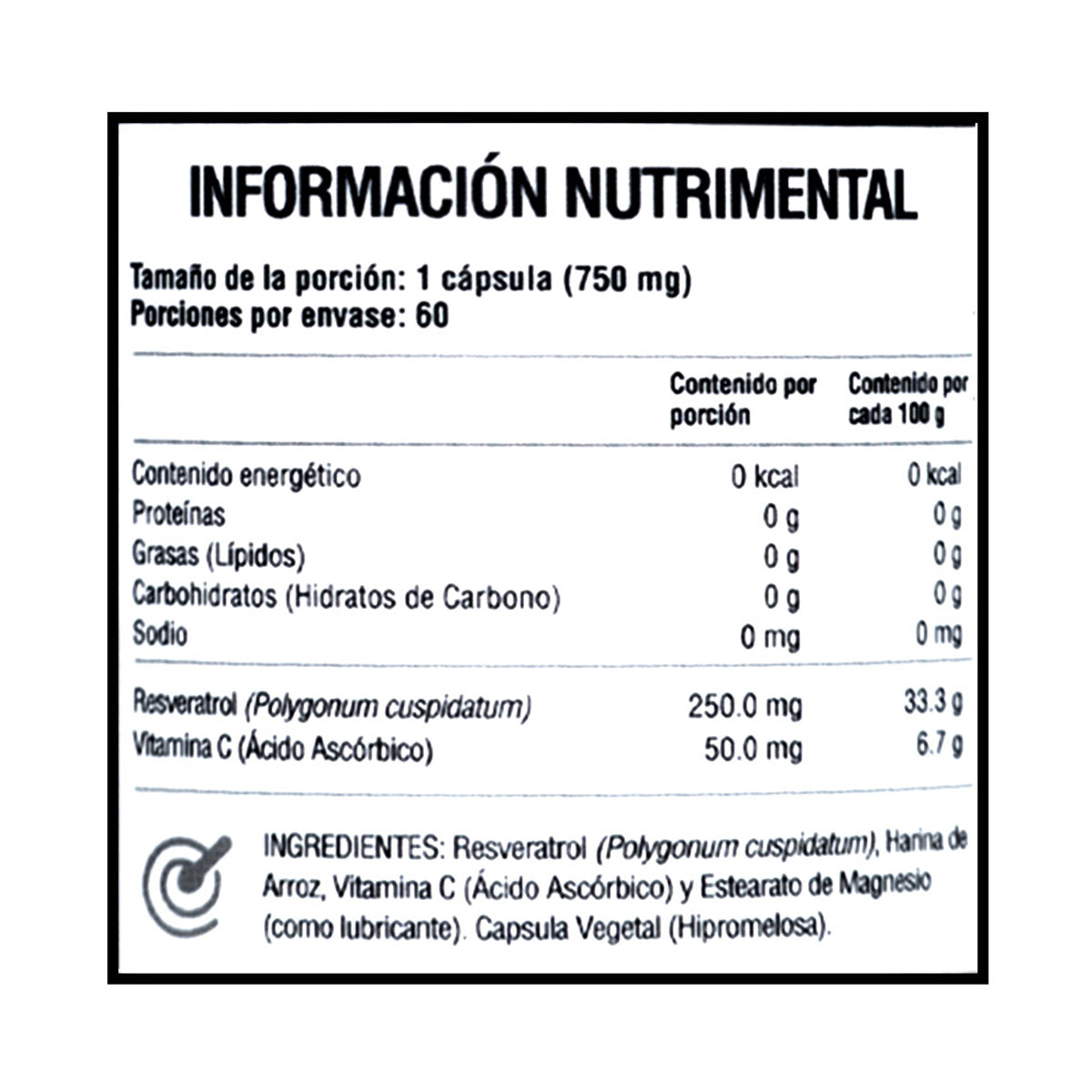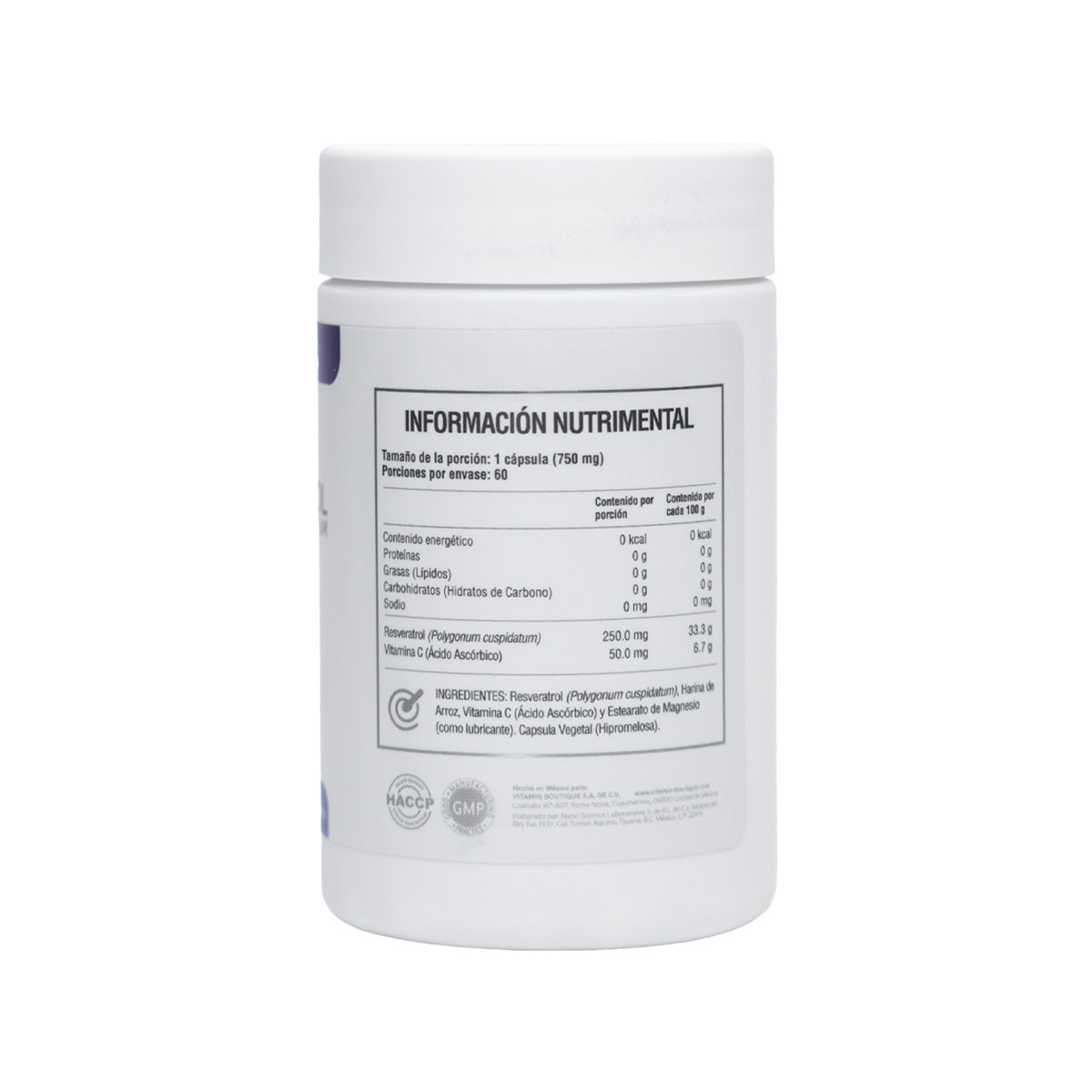 Resveratrol + Vitamina C — 60 cápsulas de 750 mg