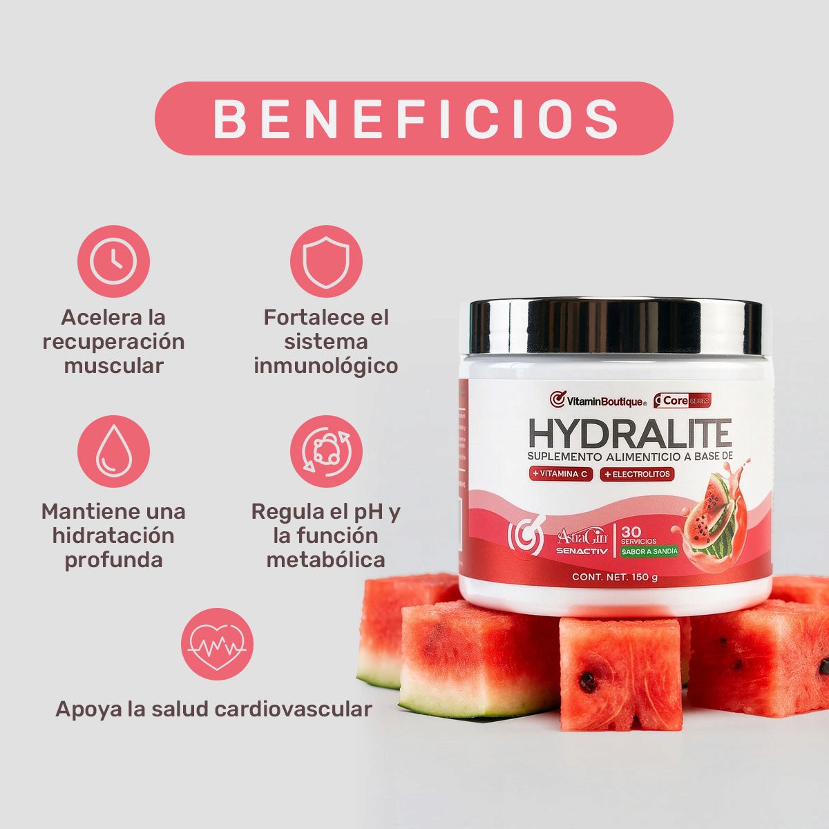 Hydralite es un suplemento formulado para reponer los electrolitos esenciales que el cuerpo pierde durante la actividad física. Ideal para deportistas y personas activas, esta fórmula sin azúcar mejora la hidratación, acelera la recuperación muscular y apoya funciones clave del sistema nervioso, metabólico e inmunológico.