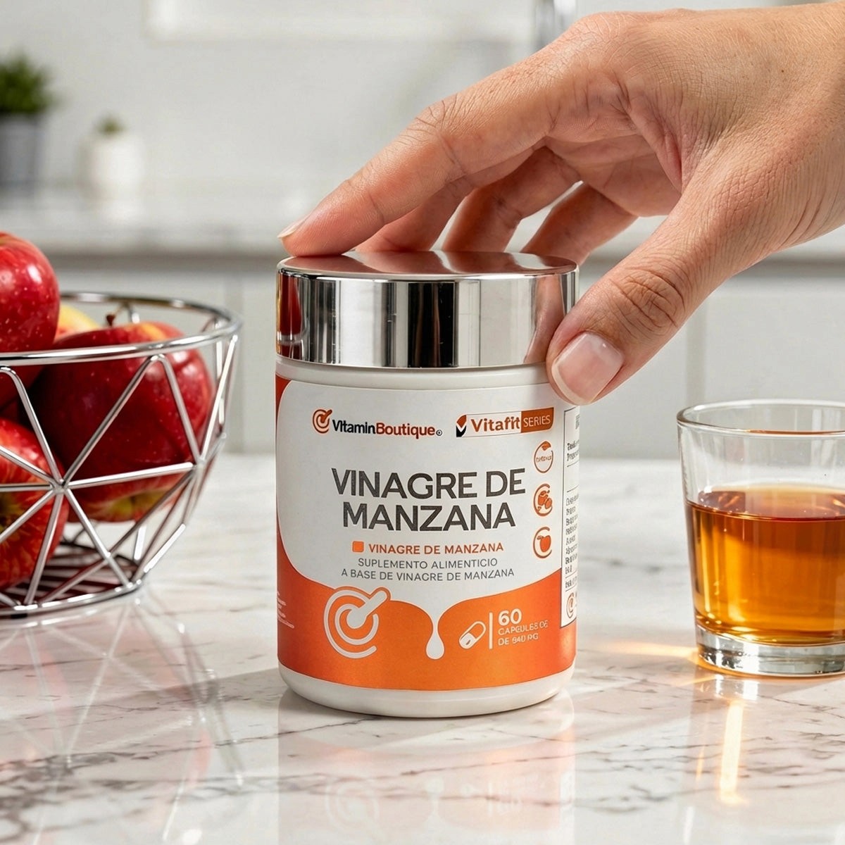 Vinagre de Manzana es un suplemento en cápsulas diseñado para mejorar la salud digestiva, apoyar la pérdida de peso y promover un bienestar general integral. Su fórmula concentrada ayuda a regular los niveles de glucosa en sangre, estimular la desintoxicación natural del cuerpo y reducir la hinchazón abdominal.