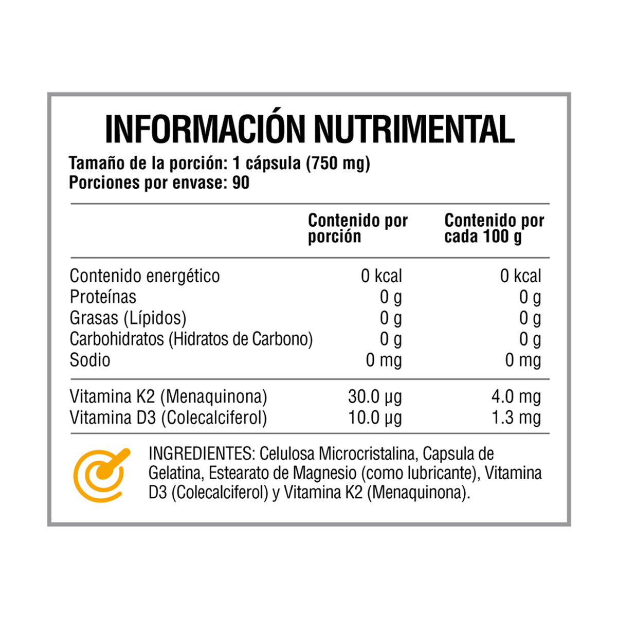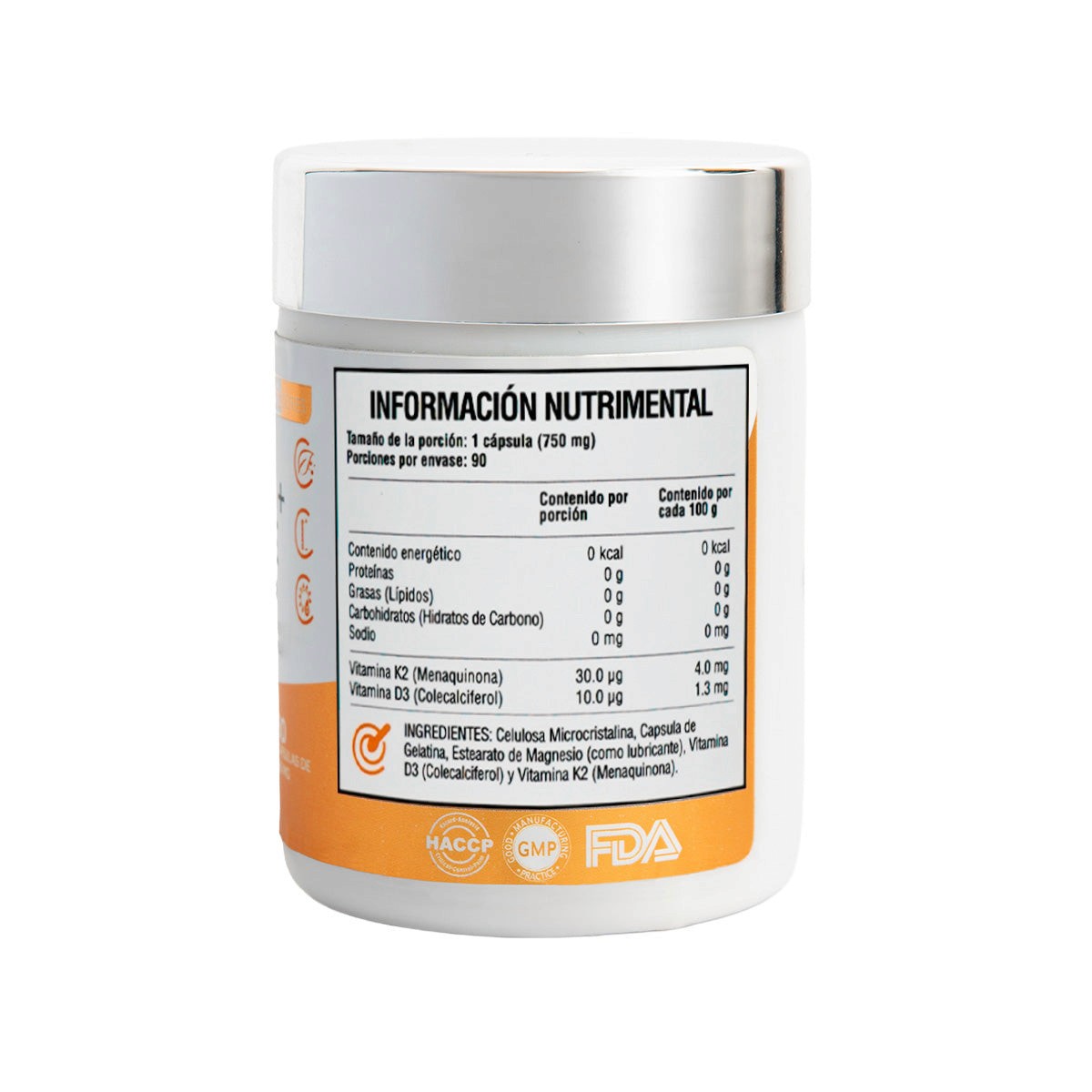 Vitamina D3 + K2 — 90 cápsulas de 750 mg